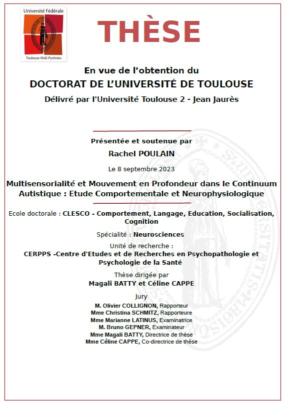 Sujet : Multisensorialité et Mouvement en Profondeur dans le Continuum Autistique - Étude Comportementale et Neurophysiologique